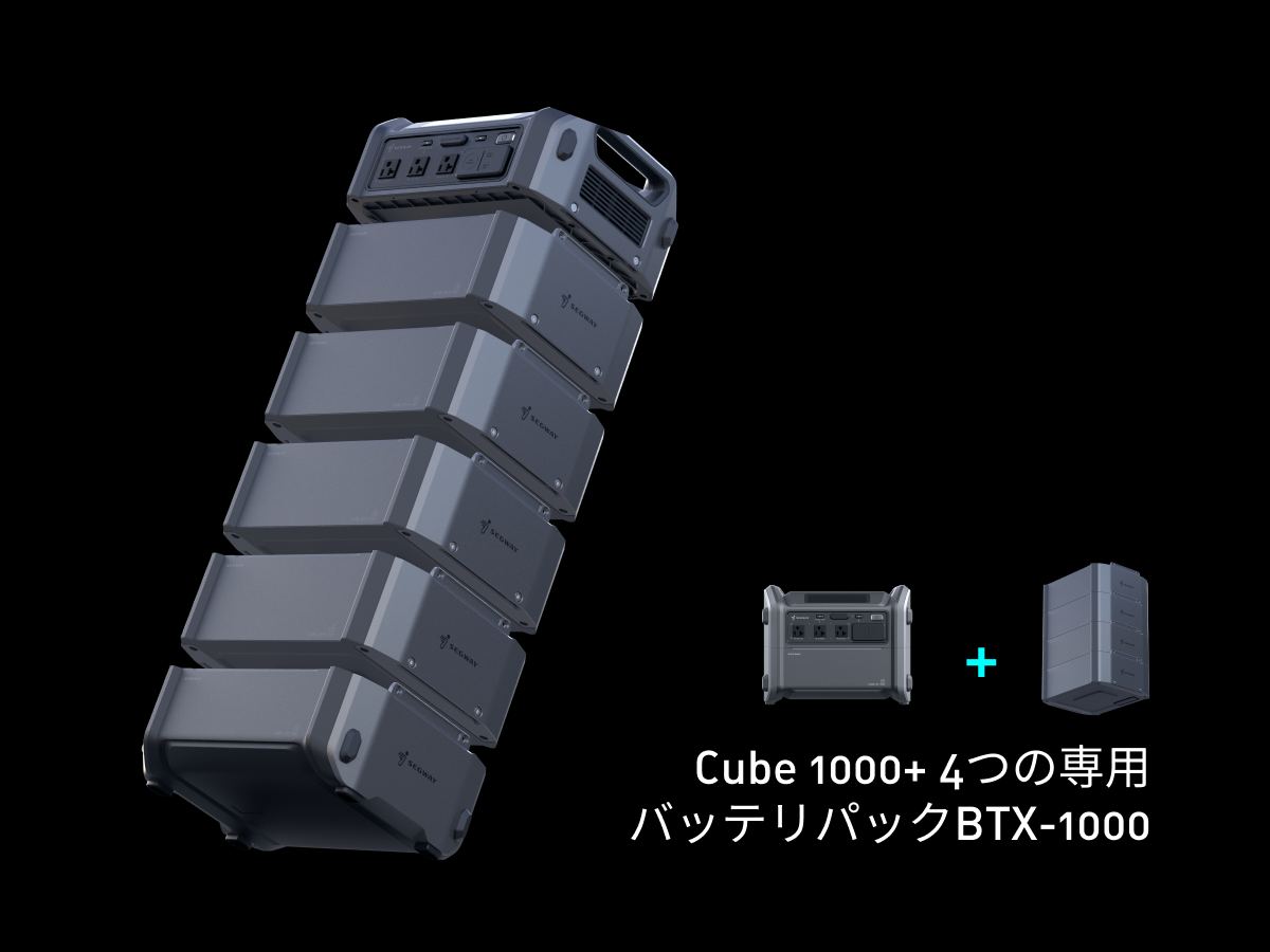 ケーブルフリーで、バッテリーパックを簡単に積み重ねるだけで容量アップ!手軽にCube1000から、超大容量Cube5000(最大5120Whまでいつでも簡単に進化可能!ライフスタイルの変化に合わせて、一人暮らしの際はCube1000、家族を持ったらCube2000と、追加バッテリーパックを追加することで、末長く愛用していただけます。