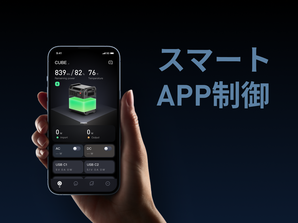 - スマートフォンのアプリを使用することで、外出先でも入出力のモニタリングと残量の確認、AC出力のオン/オフなどが簡単に操作できるため、非常に便利です。